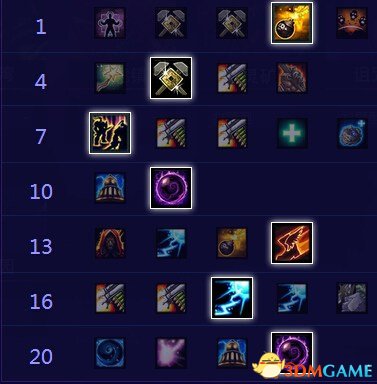 2、電磁脈沖(W技能):W技能是加茲魯維的控制技能,適當(dāng)加點(diǎn)可以增強(qiáng)控制時(shí)間和減速效果,提高生存能力。