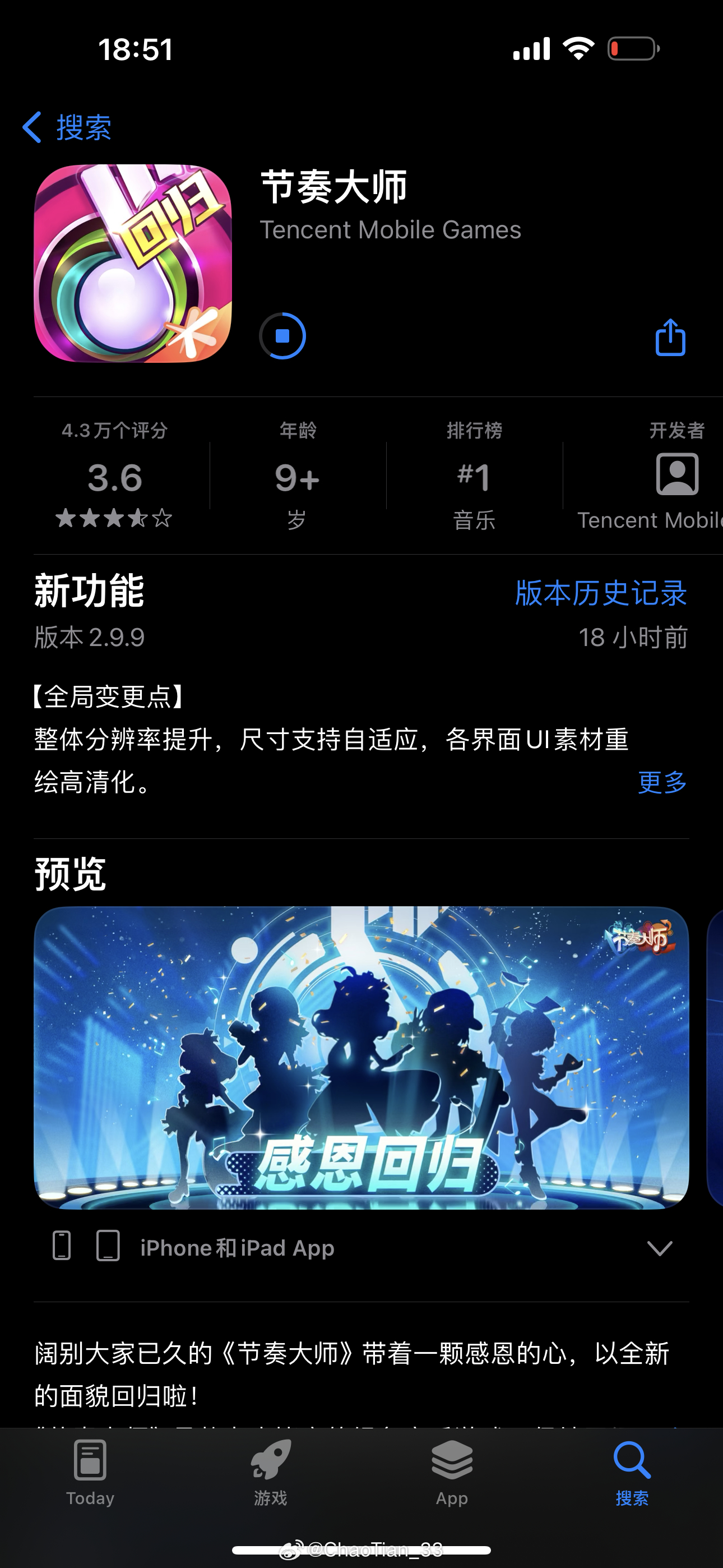 邀請你的朋友們一起加入《節(jié)奏大師》的狂歡吧!跟隨音樂的節(jié)奏,展現(xiàn)你的節(jié)奏感!?????? #節(jié)奏大師#音樂游戲#新版本更新#社交互動#福利大放送#自定義編曲#公平競技#優(yōu)質(zhì)體驗#